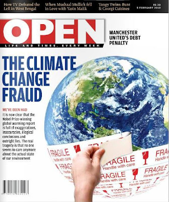 Num longo artigo de 6 páginas (16 a 21), desnecessariamente sensacionalista, que faz a capa desta semana, da revista indiana “Open”, o jornalista Ninad Sheth escreve sobre a fraude das alterações climáticas, mostrando-se impiedoso com Rajendra Pachauri e com o IPCC (Painel Intergovernamental da ONU para as Alterações Climáticas) a que ele preside, apelidando-os de “máfia das alterações climáticas”. Na capa lê-se que: “é agora claro que o relatório sobre aquecimento global, que permitiu ganhar o Prémio Nobel, está cheio de exageros imprecisões, conclusões ilógicas e mentiras.” No interior, logo abaixo do título do artigo, acrescenta: “Foi apresentado como um facto. O IPCC, liderado pelo famoso Rajendra Pachauri chegou a anunciar que havia consenso sobre o assunto. O mundo estava a aquecer e os humanos eram os culpados. Despejou um monte de mentiras.” Mais adiante: “Nunca tão poucos enganaram tantos por tanto tempo, nunca.” E continua: “A verdade é que o mundo não está a aquecer significativamente. Nem os glaciares dos Himalaias vão derreter em 2035 como foi afirmado. Nem há nenhuma ligação entre desastres naturais como o furacão Katrina e o aquecimento global. Tudo isto é puro disparate, ou se preferirem, ‘não-ciência’.” [Tradução minha] O artigo pode continuar a ser lido aqui. Por um lado, é de saudar que a comunicação social comece a despertar para o chorrilho de mentiras convenientes que umas centenas de políticos, na generalidade ignorantes e umas dezenas de cientistas maioritariamente corruptos, propagaram durante cerca de 20 anos. Mas por outro, é caso para perguntar onde esteve a comunicação social nestas últimas duas décadas? E já agora, por onde anda a dignidade e o profissionalismo dos cientistas que se mantiveram e permanecem calados a esta e a várias outras mentiras ridículas que caçadores de subsídios, auto-denominados cientistas, venderam no último meio século e infestam o ensino das ciências mundo fora?